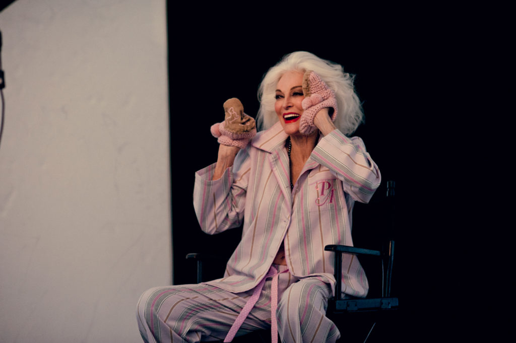 Carmen was enlisted by Aussie fashion’s true king of evening dressing, Peter Alexander, to represent luxurious dressing gowns, two piece pj sets and nighties in the upcoming Mother’s Day collections. Shot in NYC by world class photographer Alexei Hay, the campaign truly captures Carmen’s vibrance and zest for life. I’m so grateful to be invited by Peter Alexander to snap these behind the scenes images of magic happening. Carmen is a true muse! I also had the chance to sit and chat to her for about half an hour during a break of shooting, she gave me all kinds of sage advice about relationships and my career – I wish she was related to me! I’m super lucky to have spent time with Ms Dell’Orifice.